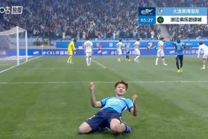 毛伟杰扣过防守兜射破门,大连英博连入两球,3-0领先浙江>>